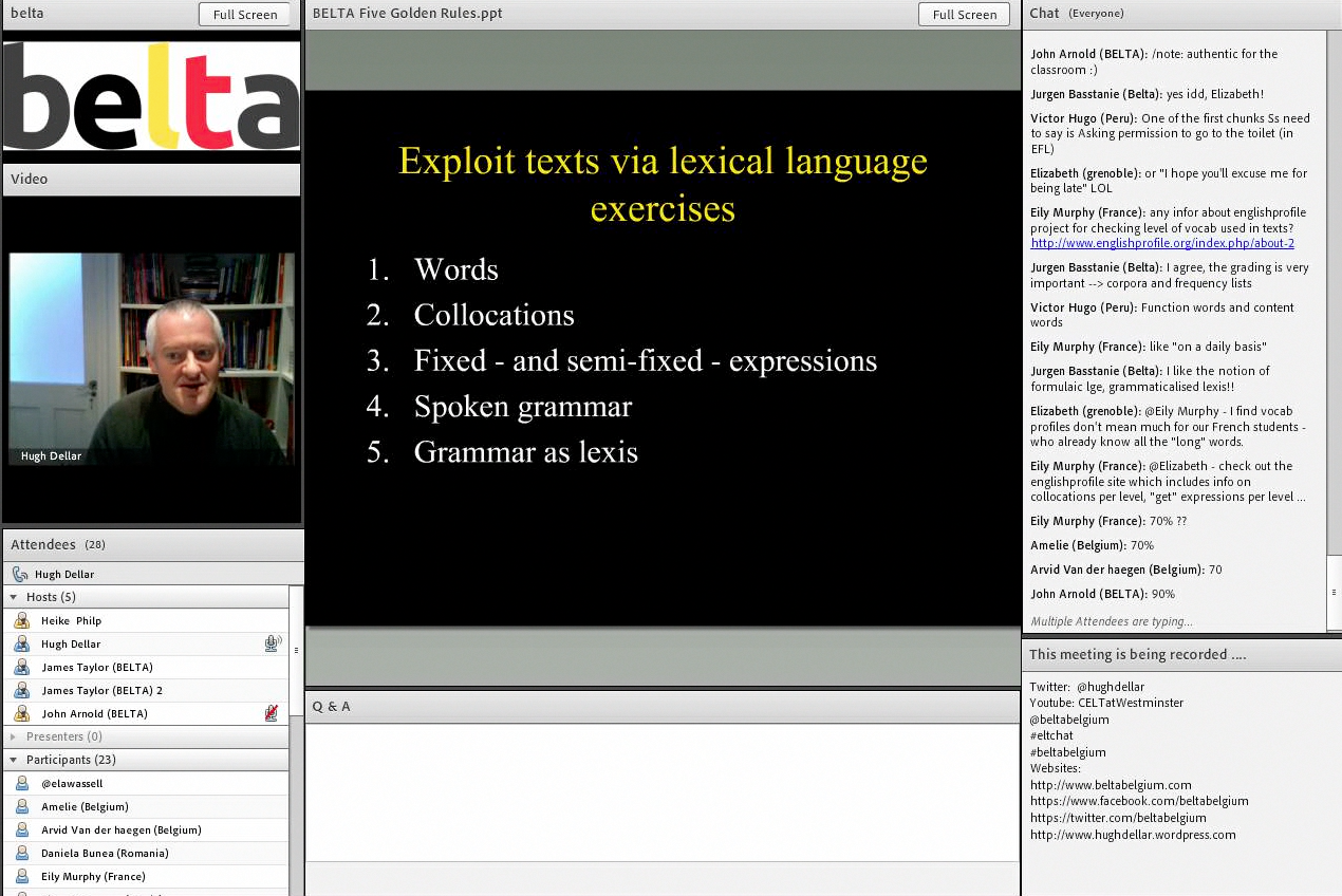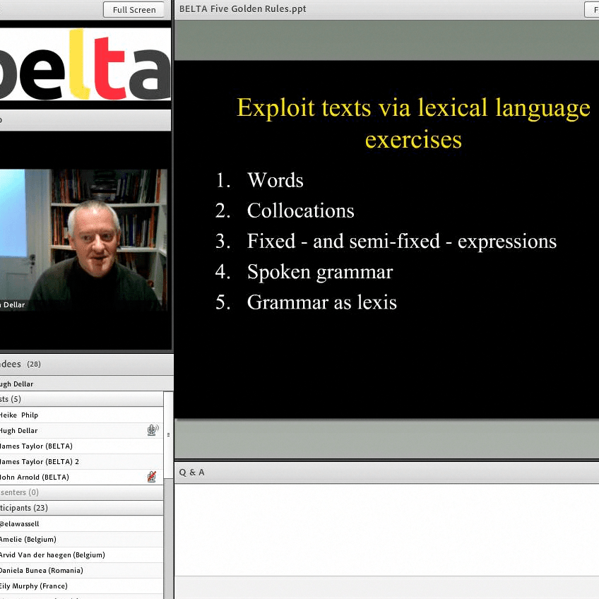 This was something I did a few months at my previous school. We watched Hugh Dellar’s webinar for BELTA, Five Golden Rules, on the Lexical Approach and then discussed the implications of his talk in the training session. What this achieved was that rather than being a solely trainer-led session, it was much more equal and discursive and offered an interesting variety to normal sessions.