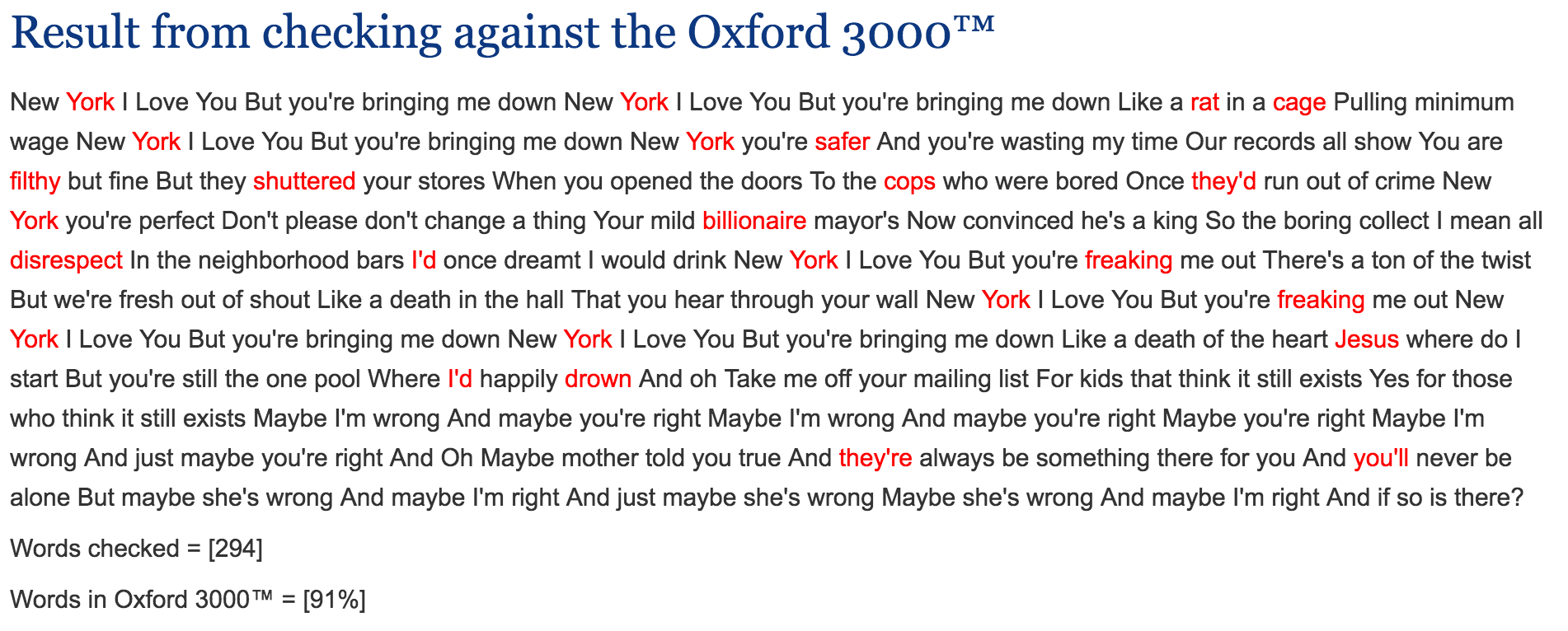 5) Looking at the words to this song in the Oxford 3000 text checker, there are very few individual words that I think the students would find difficult, but together as phrases, I think it becomes a lot more tricky.
