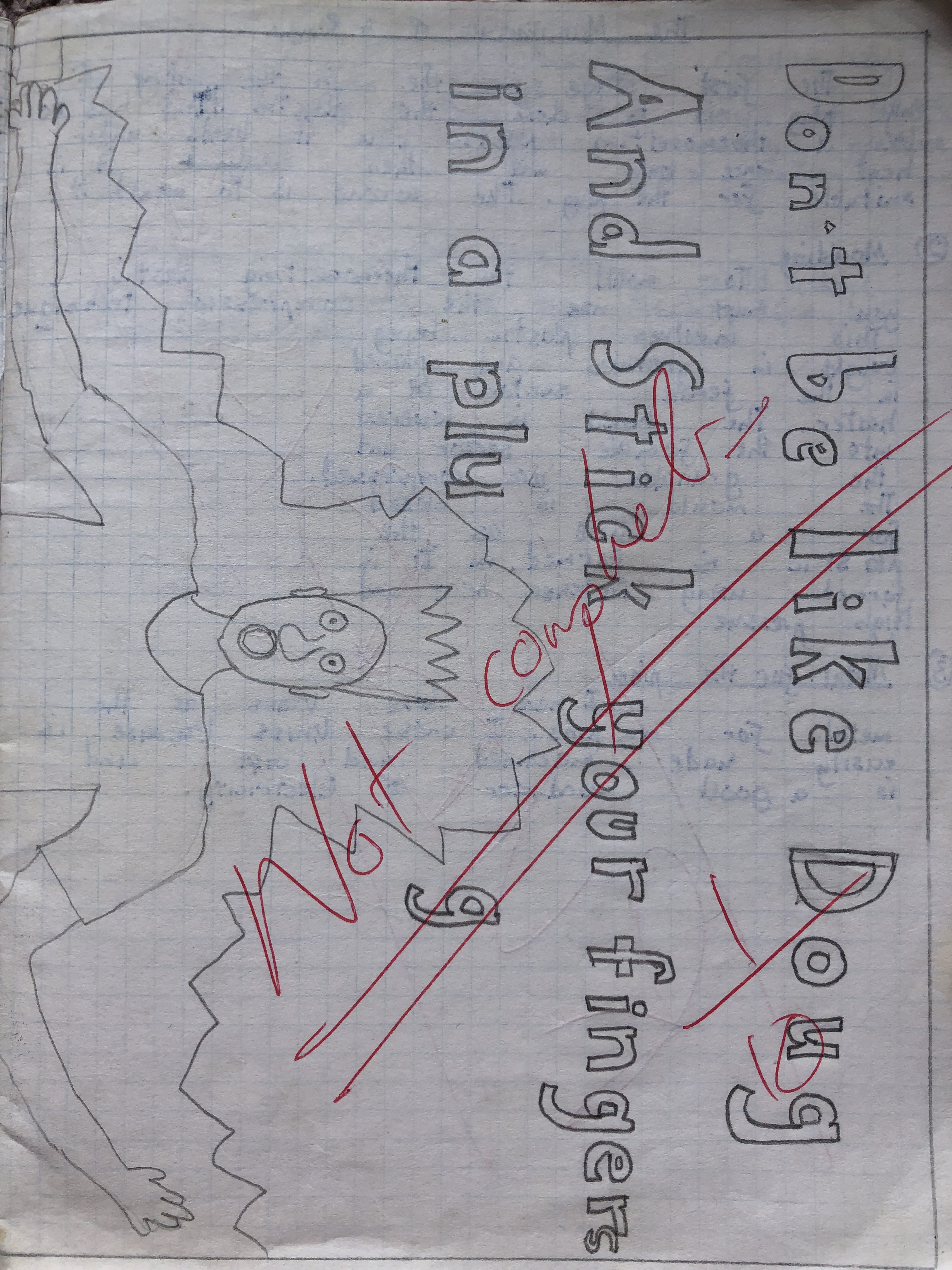 I recently was able to get my hands on my old school books and I found something that I’d wanted to see for years. These pages were taken from a class I had when I was about 14, and I wanted to see if my memory was correct. It was. As you can see, this teacher decided that this was the best way to give feedback to my work.